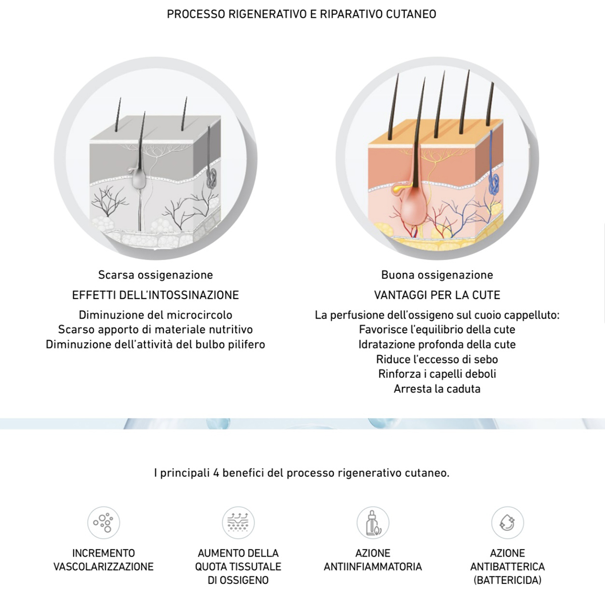 È un trattamento estetico che serve a migliorare la salute del cuoio capelluto e dello stelo, migliora i processi metabolici, aiuta i tessuti ad ossigenarsi in maniera ottimale. Utilizzando l’ossigeno in pressione drena, apre i pori e migliora la circolazione e il rinnovamento cellulare, combattendo i radicali liberi ed idratando in profondità i capelli.